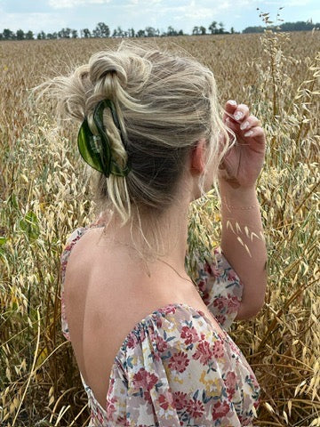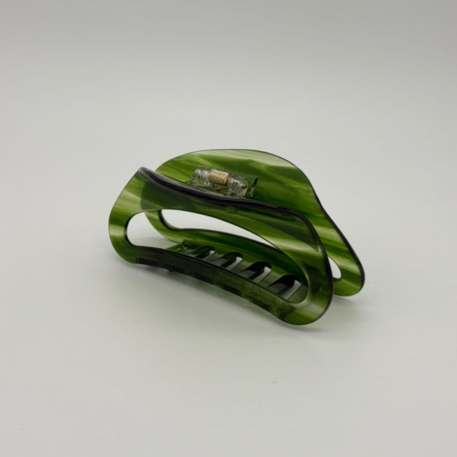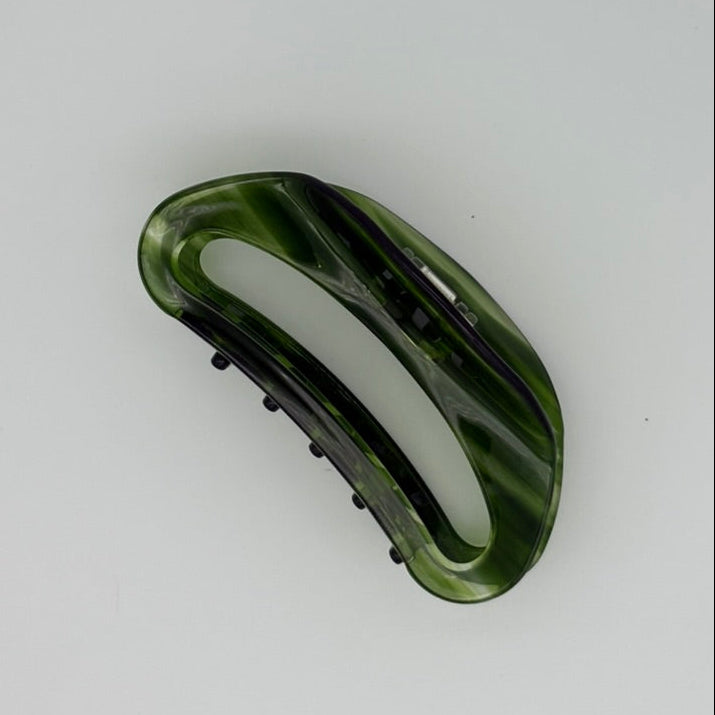 A bold claw clip in deep green marble, inspired by the northern lights. Lightweight yet durable, it holds hair securely while adding natural elegance to any look.