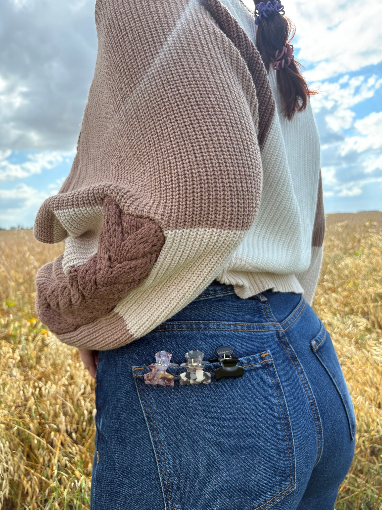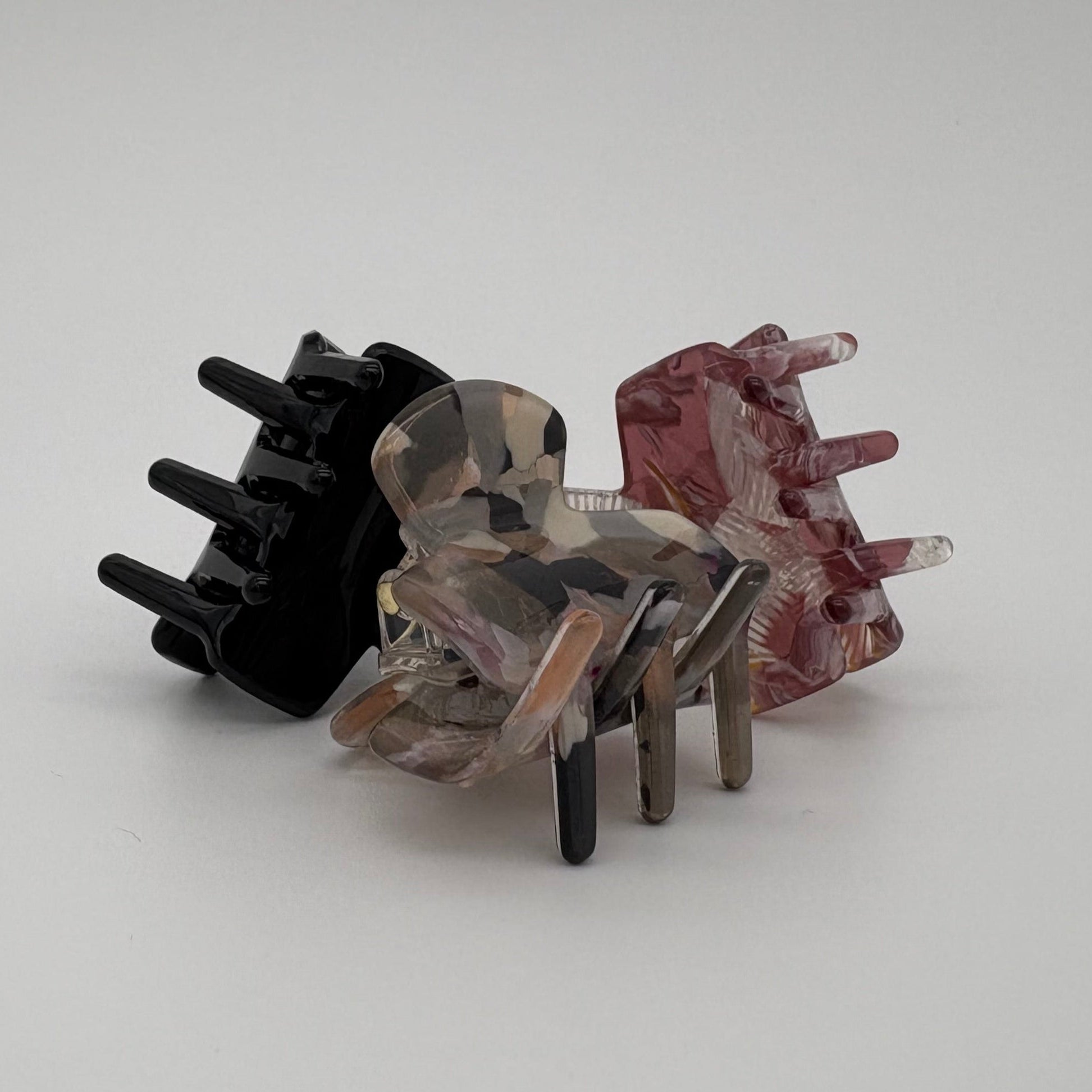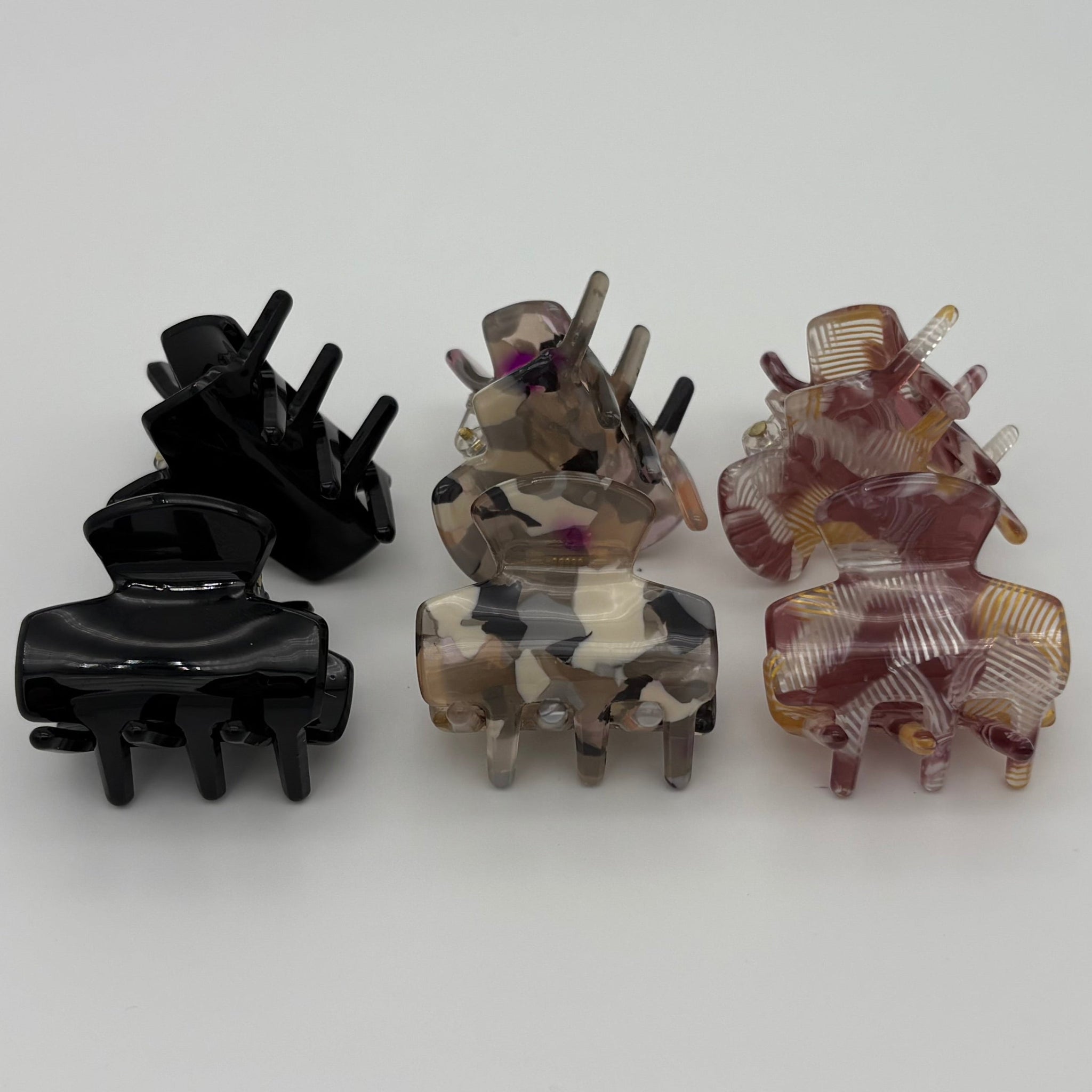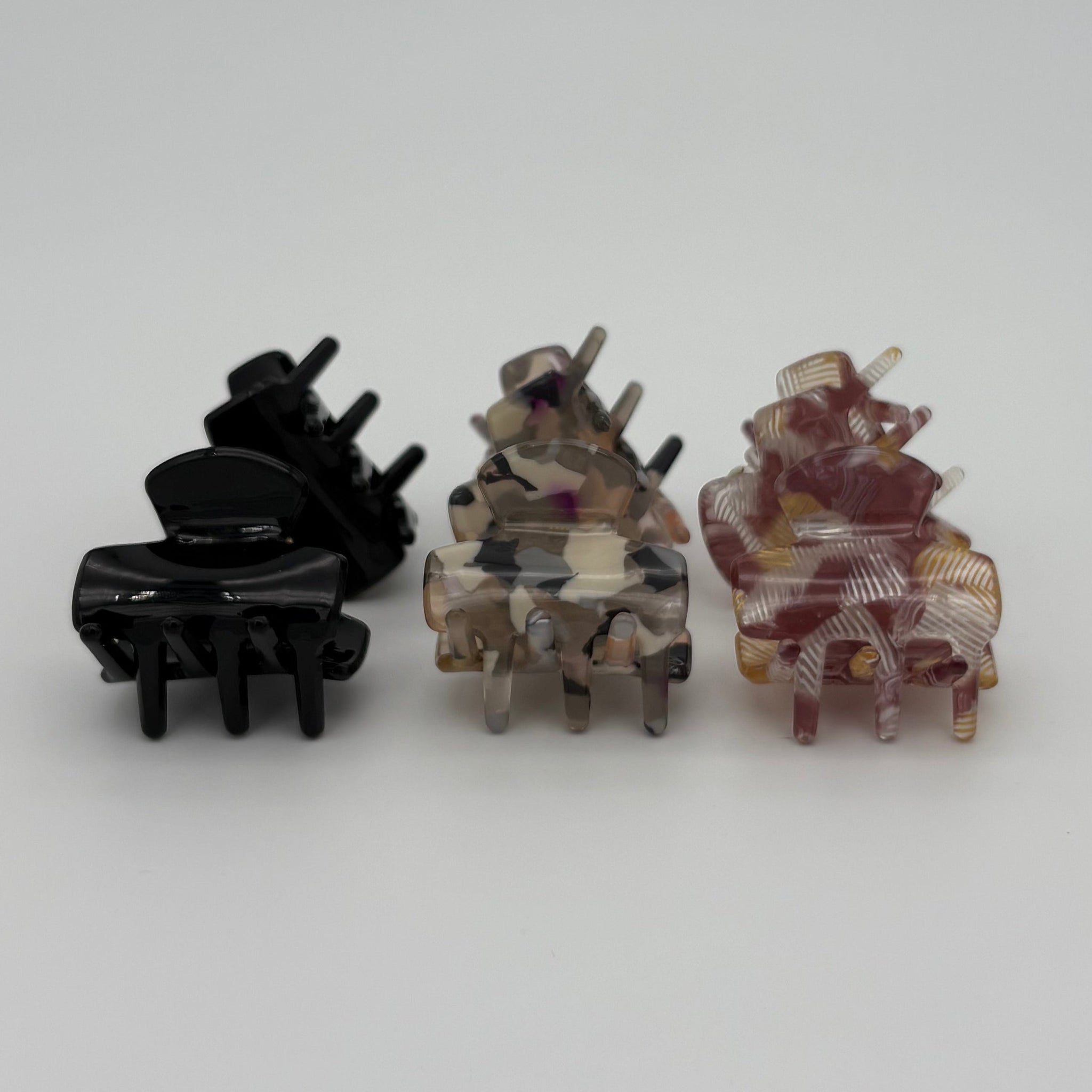 A set of six petite claw clips in classic black and marbled tones. Perfect for half-up styles, taming flyaways, or adding a subtle accent to everyday looks.
